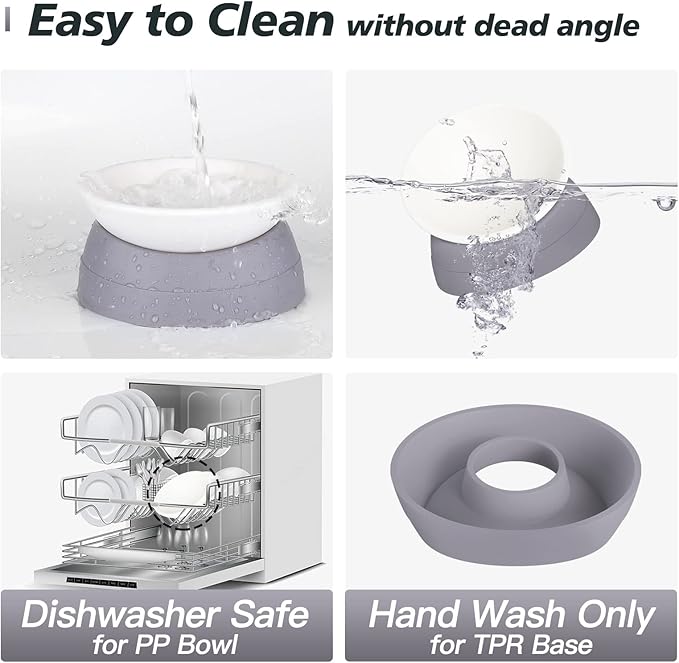 - Free Tilted Cat Bowl: The raised cat dog bowl body and the rubber base are designed separately to ensure the small dog bowl can be adjusted to any angle to suit different pet, like kittens, adult cats, puppy and medium size dogs.